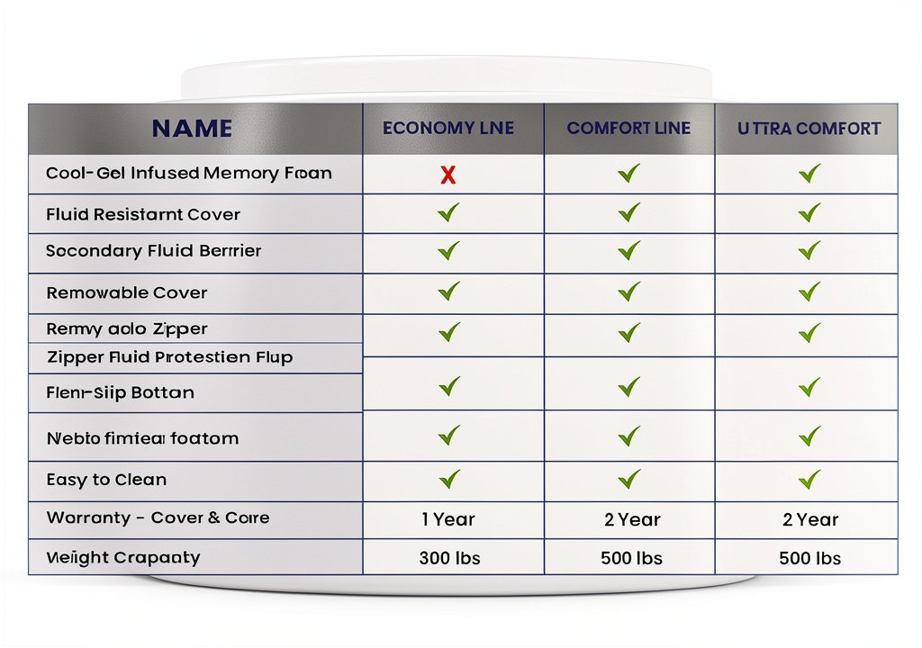 Medtrica stands out with its commitment to quality, using medical-grade materials that exceed industry standards for durability and performance. The fluid-proof, stain-resistant vinyl cover is specially designed to withstand rigorous cleaning and high-traffic use, reducing the risk of contamination and extending product life. With a 2-year warranty covering both the cover and core, customers benefit from assured reliability and support, making it a cost-effective choice for healthcare settings focused on long-term value.